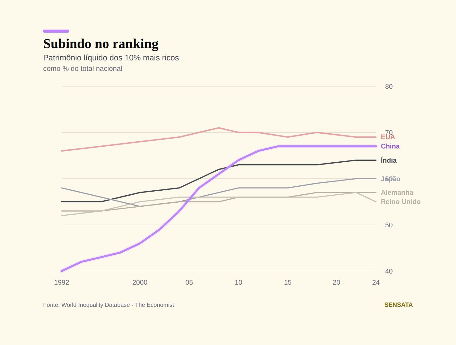 Tudo. O debate é o mesmo daqui: imposto sobre herança, jovem desacreditando que esforço compensa, riqueza virando questão de berço. Só que lá, isso tá acontecendo em uma geração.